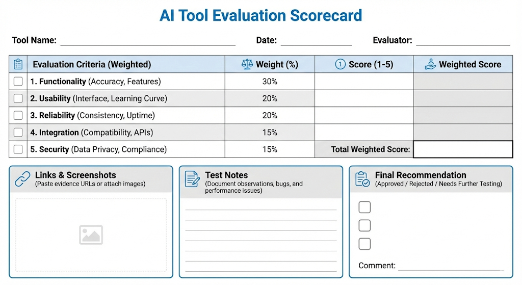 Make confident AI tool choices with a proven, practical scorecard. Learn the critical tests that reveal real value, real risk, and real fit for your team.